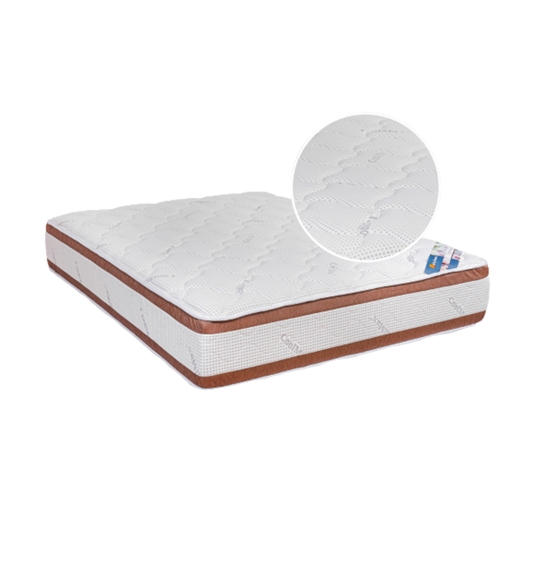 Colchón con núcleo de resortes pocket, enfundados individualmente, para garantizar independencia en los movimientos, y una óptima adaptación del cuerpo al colchón. Telaa de fibra de algodón con tratamiento anti-ácaros y antibacteriano, con tecnología aplicada para liberar la humedad y calor corporal con mayor eficiencia.